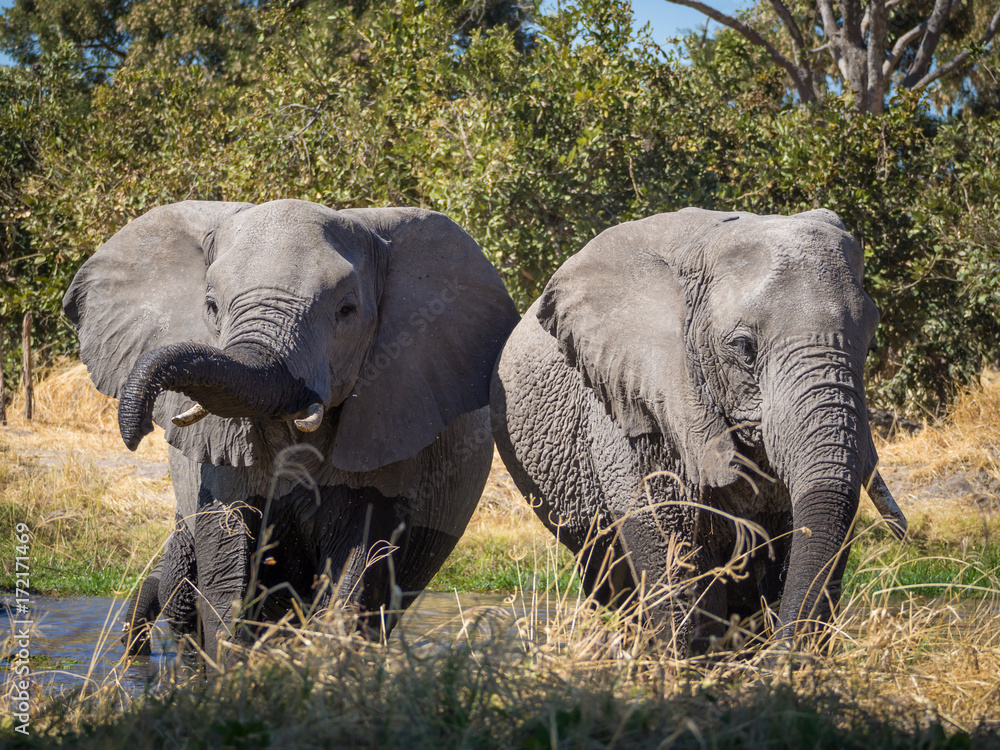 Two Large Wet African Elephants Drinking From River At Moremi Np Botswana Africa Stock Photo Adobe Stock